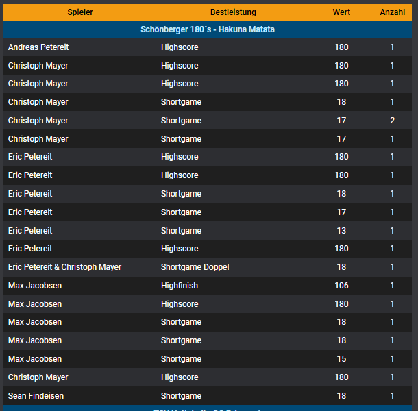 Dabei gab es natürlich auch jede Menge Highlights zu Feiern auch wenn dies bei unseren Hakunas meistens eher Leise geschieht freut sich doch jeder über gute Darts!
