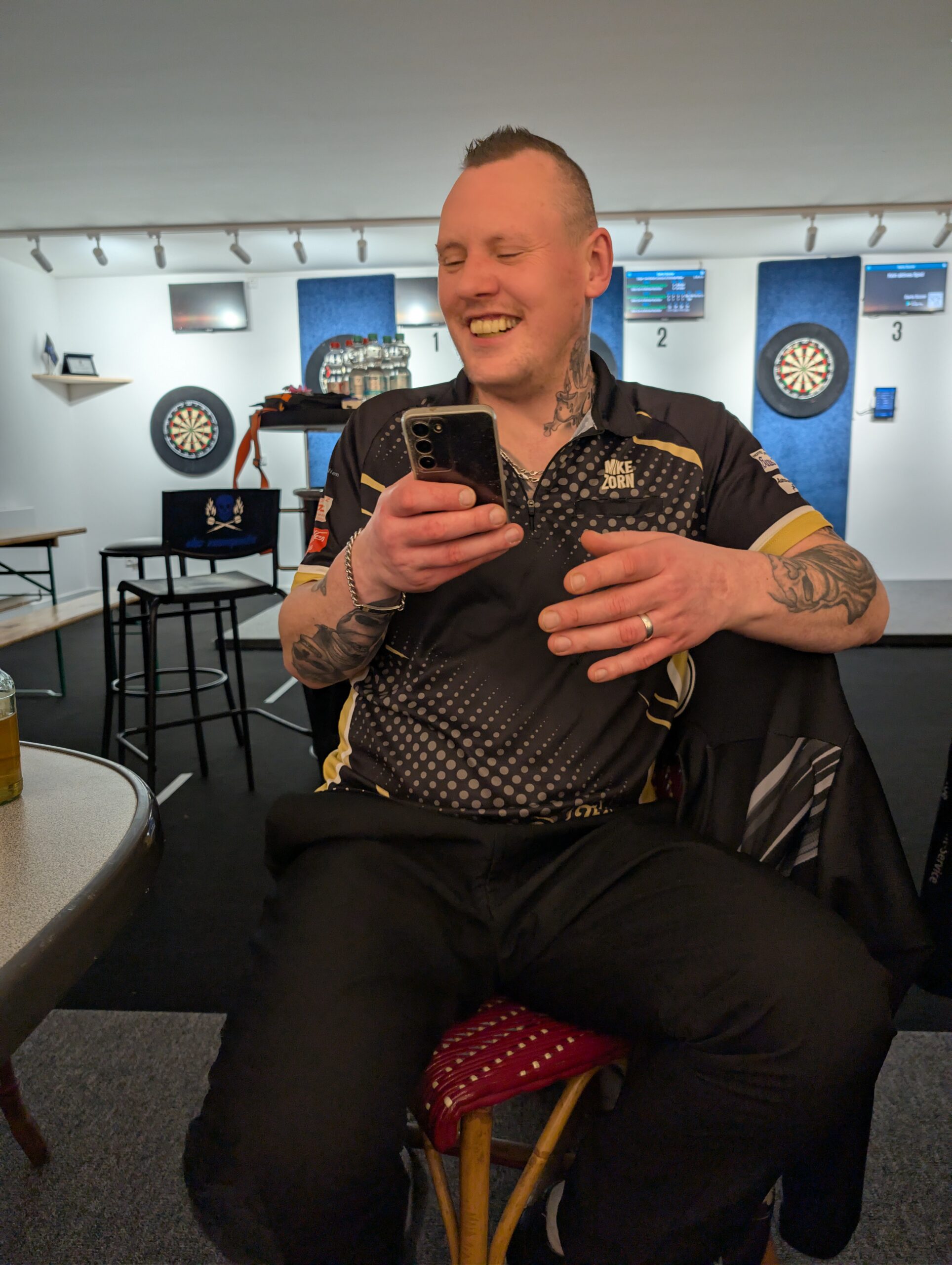 Mike am Chillen nach seinem Sieg im Einzel