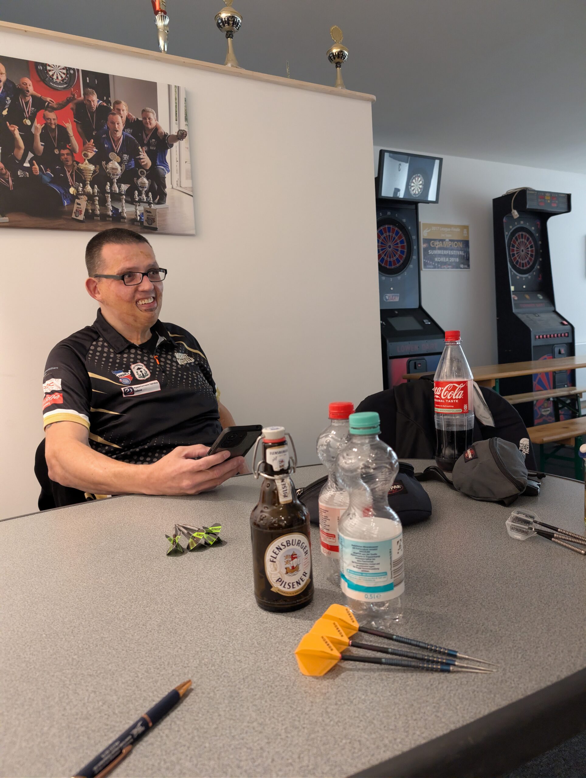 Es lief auch zunächst gar nicht so schlecht für unsere Truppe, die trotz allem gut gelaunt und munter ans Werk ging und zeigte, dass man ein gewachsenes Team ist. Mit Hoschi, Marco, Mateusz und Lars gelang es zumindest vor den Doppeln mit einem 4 zu 4 da zustehen. Leider sollten die Doppel hier unglücklich verlaufen und am Ende stand eine 4 zu 8 Niederlage. Gratulation an unsere Freunde aus Flensburg!