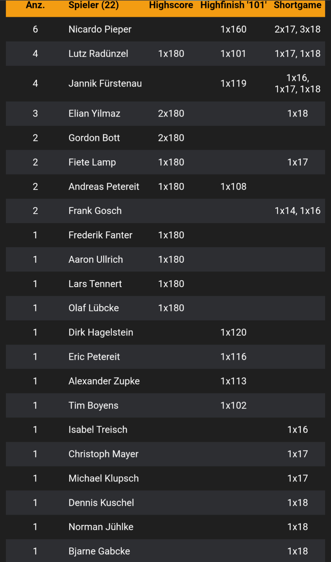 Mit den Weeklys geht es nun am Montag, dem 2.3 weiter während bis dahin noch SHDV, EDSV, WDF und Bundesliga gespielt wird. Andreas heute nicht mit der weitesten Anreise aber mit der weitesten Abreise. Die Zeit des Dartmüssiggangs ist da erst einmal zuende.