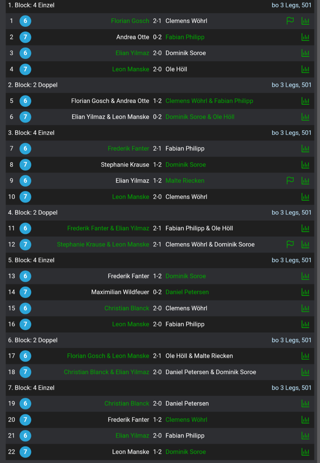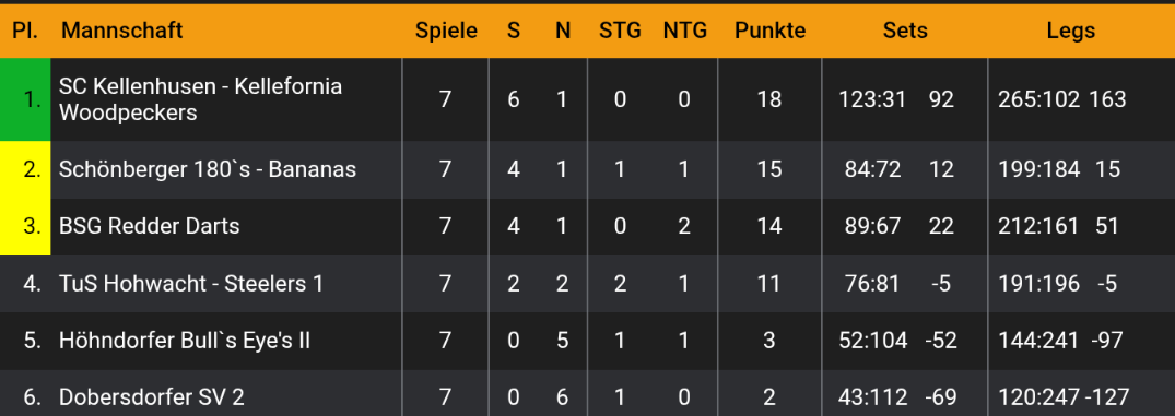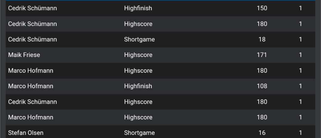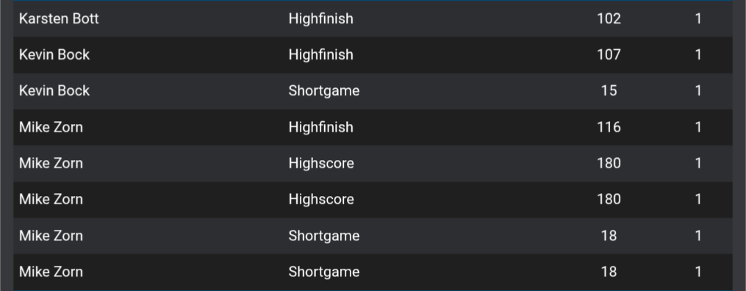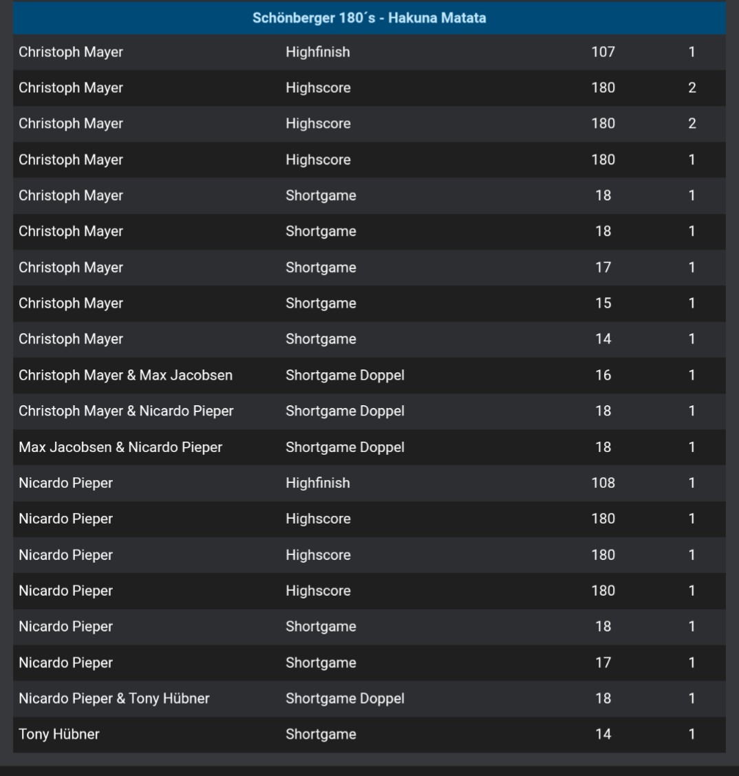 Ebenfalls gewinnen konnten unsere 29er. Beim 15 zu 7 Erfolg spielte Stefan dabei einen 17 Darter und warf eine 171. Peter brachte ebenfalls eine 171 ans Board und Norman spielte einfach mal 16 Darts. Alex hingegen dachte sich wohl was bringen shortlegs und Highscores… Machte er doch einfach 158 aus. Sauber!